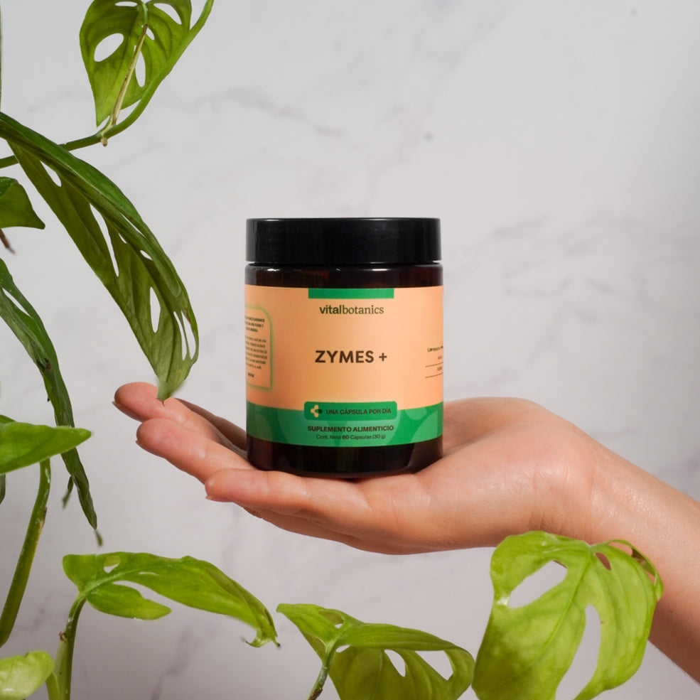 ZYMES + es un suplemento en cápsulas que combina enzimas digestivas con compuestos vegetales. Está diseñado para apoyar una digestión más ligera, mejor aprovechamiento de los nutrientes y menos molestias después de comidas pesadas.