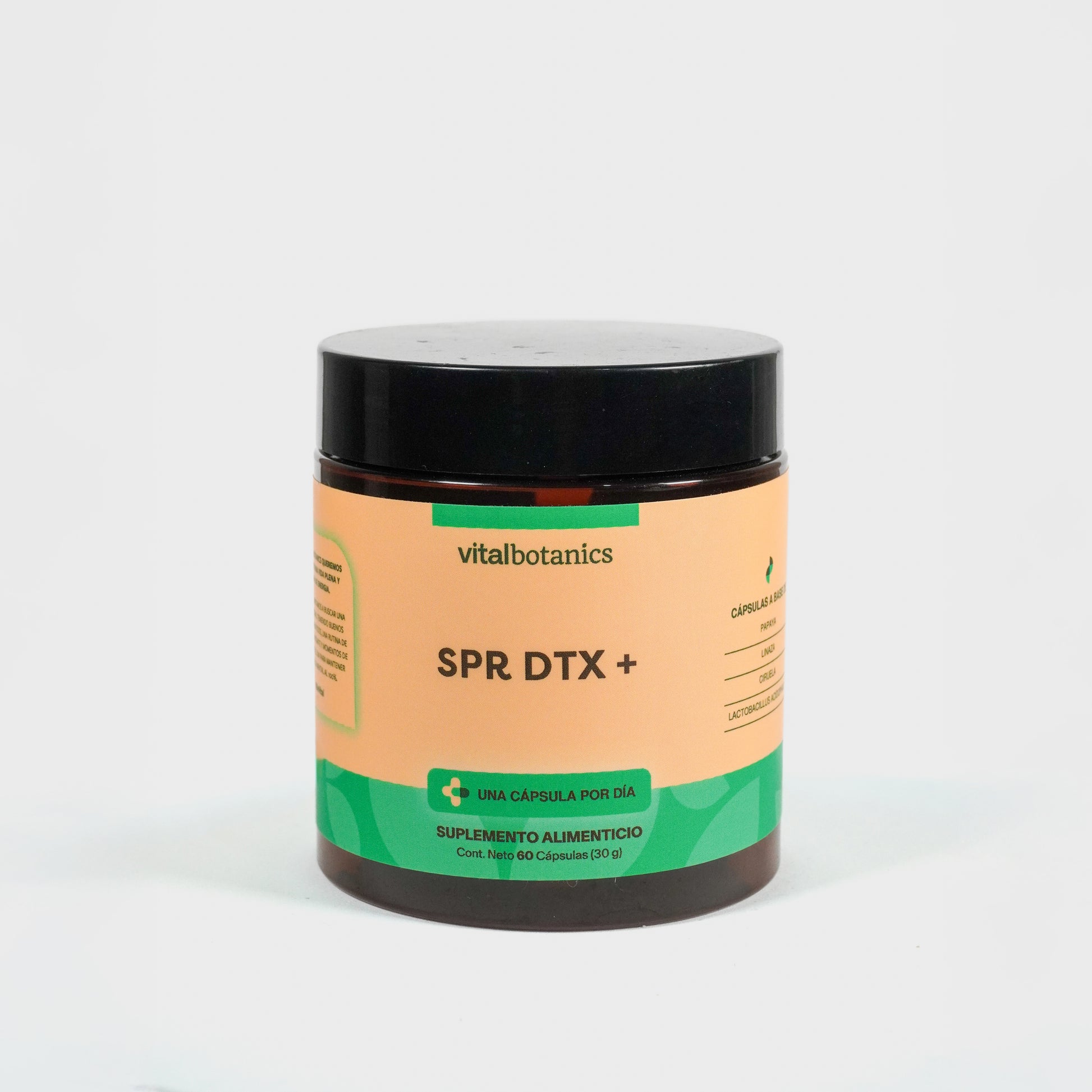 SPR DTX + es un suplemento en cápsulas que combina papaya, linaza, ciruela y probióticos (Lactobacillus acidophilus). En conjunto pueden apoyar la digestión ligera, la regularidad intestinal y el bienestar del sistema digestivo.