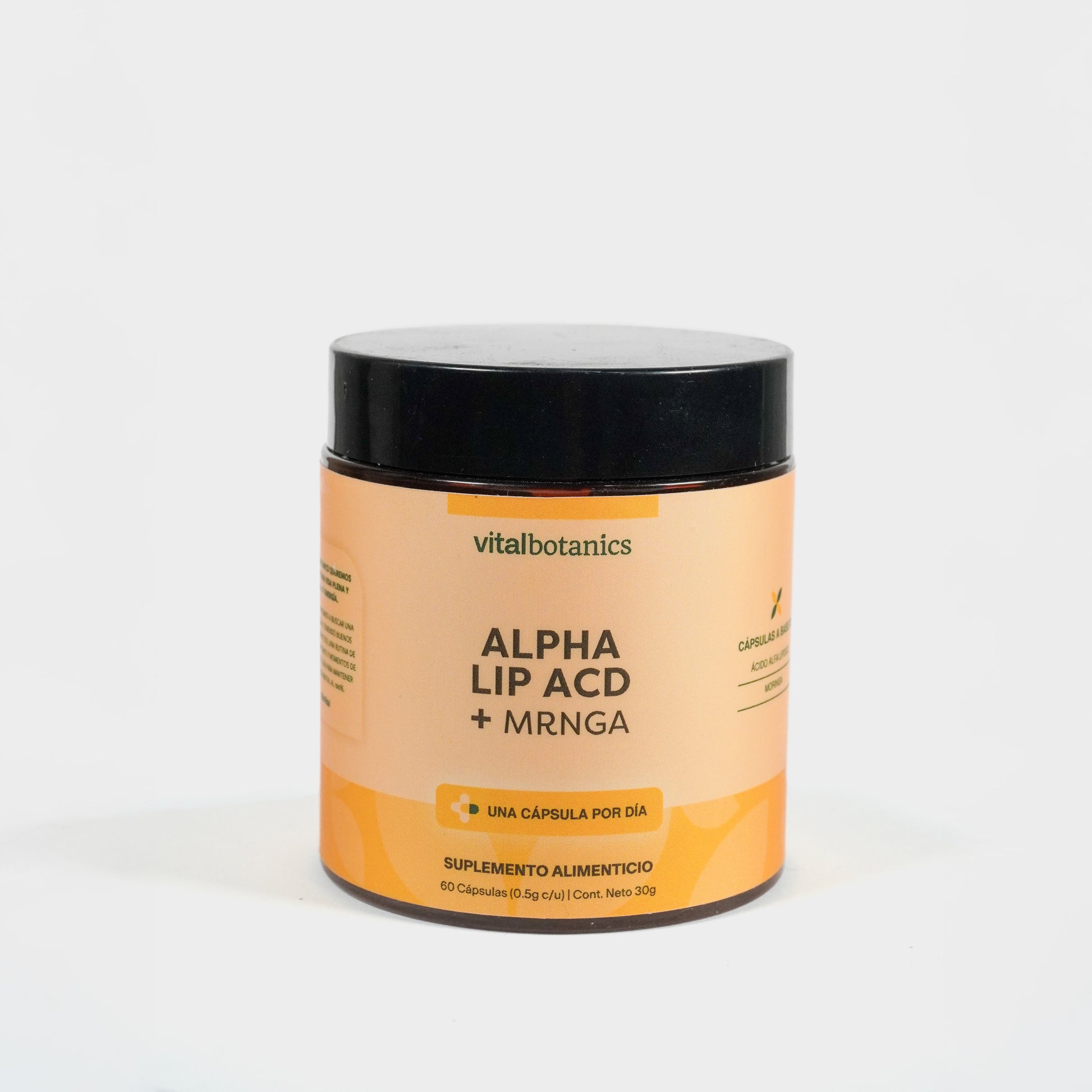 Cápsula con Ácido Alfa Lipoico y moringa. En conjunto pueden contribuir a la protección antioxidante, al metabolismo energético y al equilibrio general del organismo.
