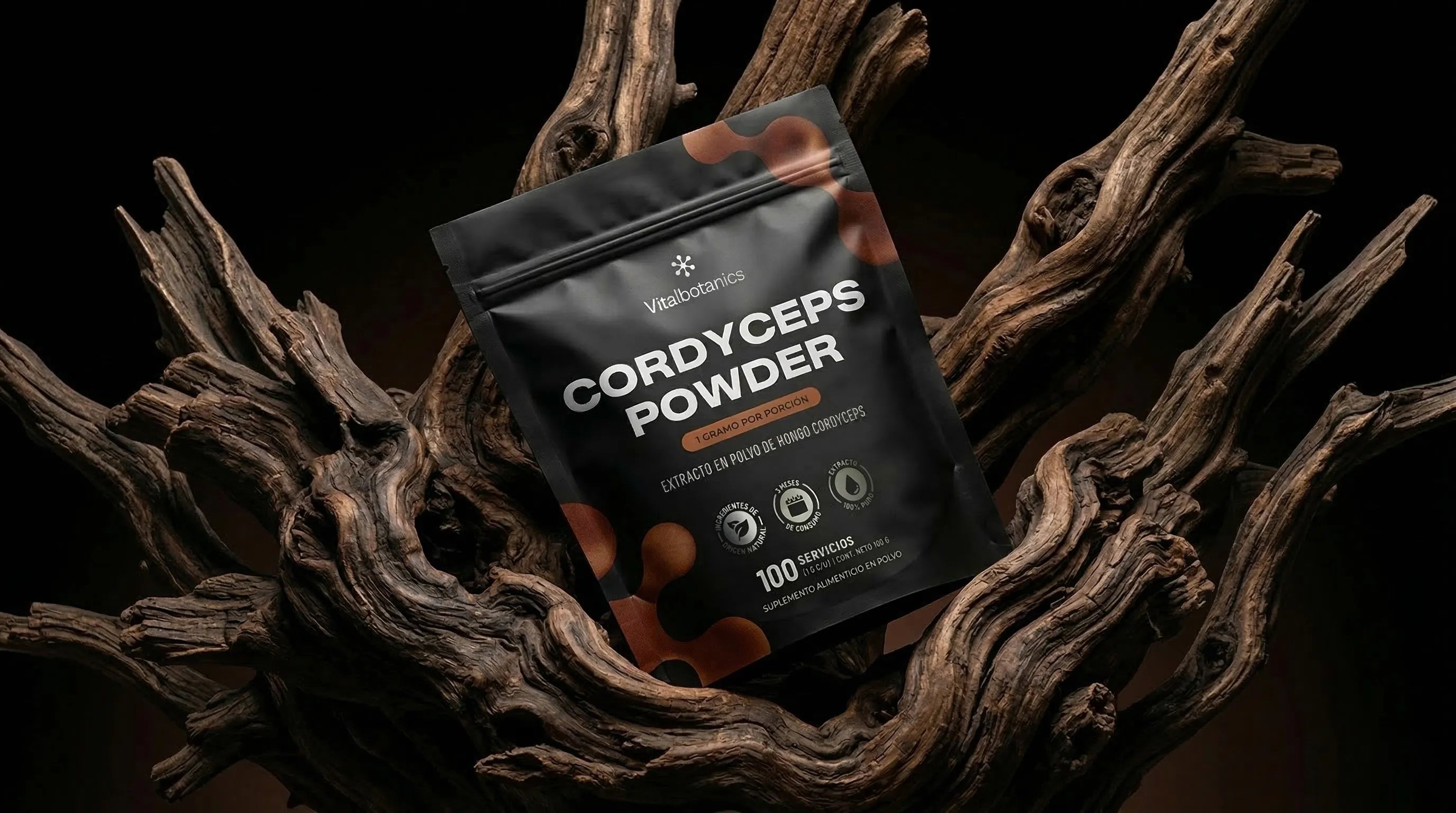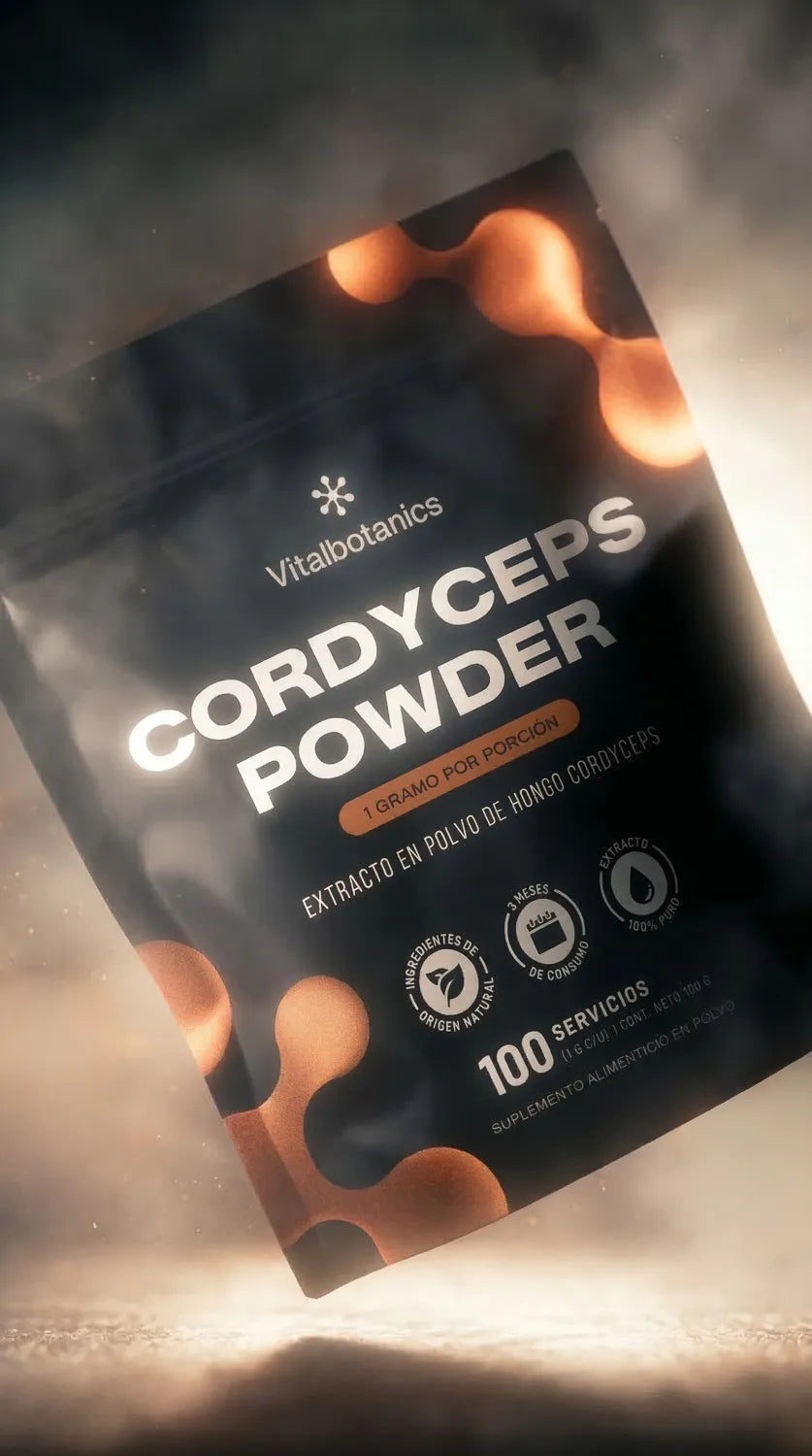 Extracto puro de Cordyceps en polvo, 100 g. Hongo funcional que contribuye a la producción de ATP, la oxigenación celular y la resistencia física. Apoyo para el rendimiento deportivo y la energía sostenida.